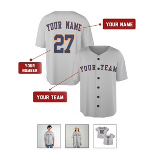 Personalized Houston Astros Gray Style Alternate Jersey Player Name Team Name & Number for Men, Women, Youth, Kids - Piping / No Piping Options | Sizes S to 5XL